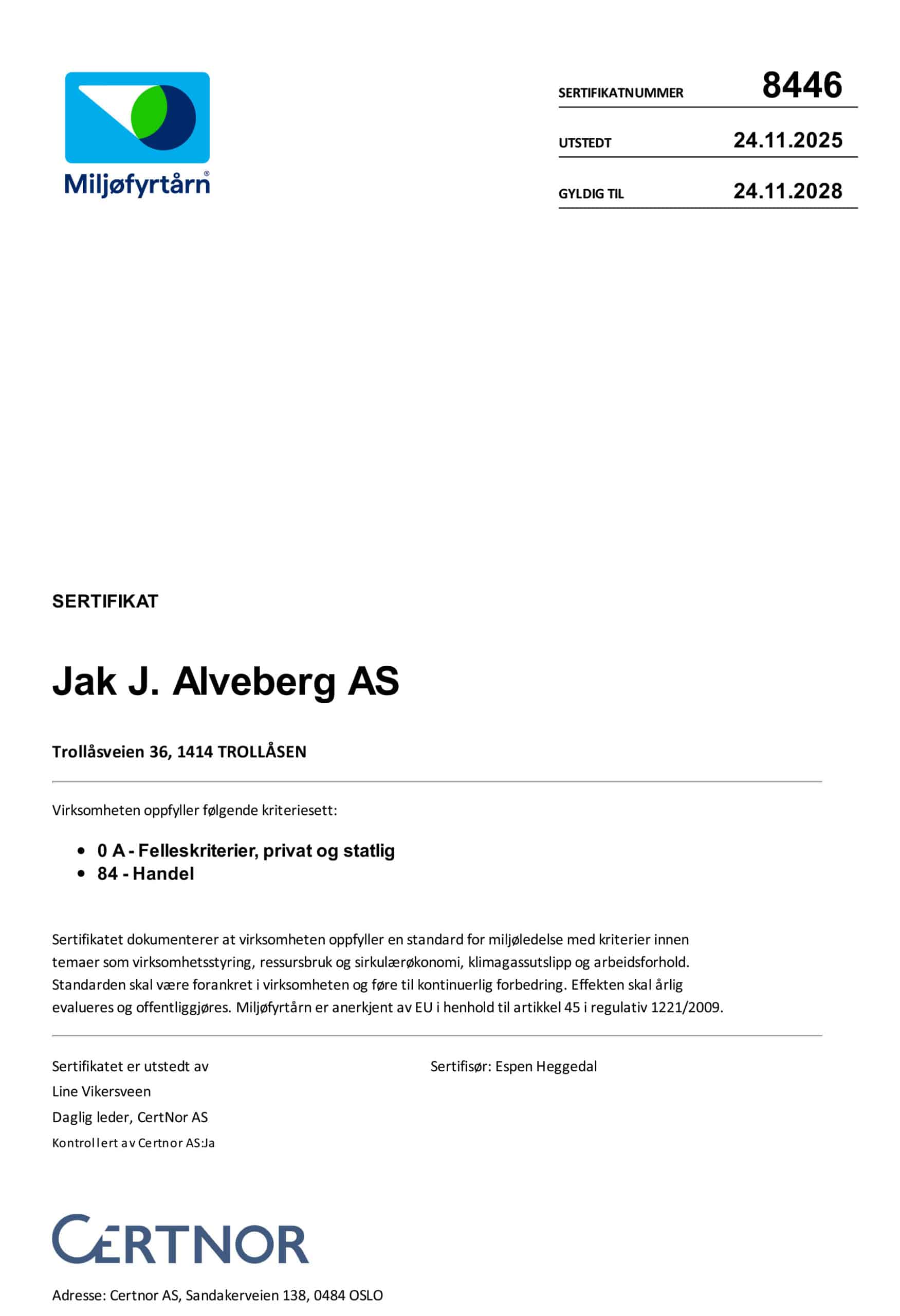 Våre kvalitetssystemer er iht AS standard, ISO standard og Miljøfyrtårn.